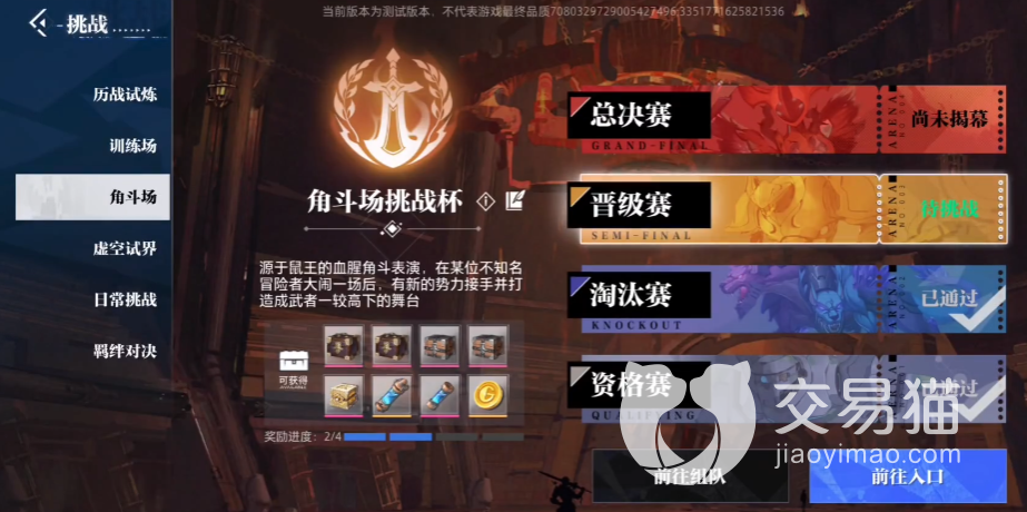 这里地方还会分为四种赛事,这里每个人当天就只能挑战其中的一种,并各位只有将这一关成功闯过去了第二天才可以进行下一关卡的挑战。同时这里的对战方式也会有单人和多人区分,只要在此处将三个怪击杀掉便能够获取到对应的奖励。