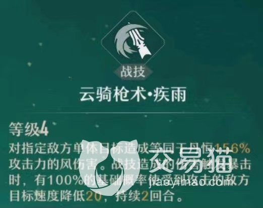 在实战方面因为自身速度高,而且可以减速对方,所以在一轮回合内出手两次完全是可以实现的目标,这样无论在哪一方面计算都是非常划算的收益。最后就是在装备套装上的推荐,如果能够集齐翔鹰套那么是最佳选择。角色本身基础速度就高,再加上套装所带加速效果,真正能够达到每次都靠前出手,词条选择方面依然是以攻击为主。