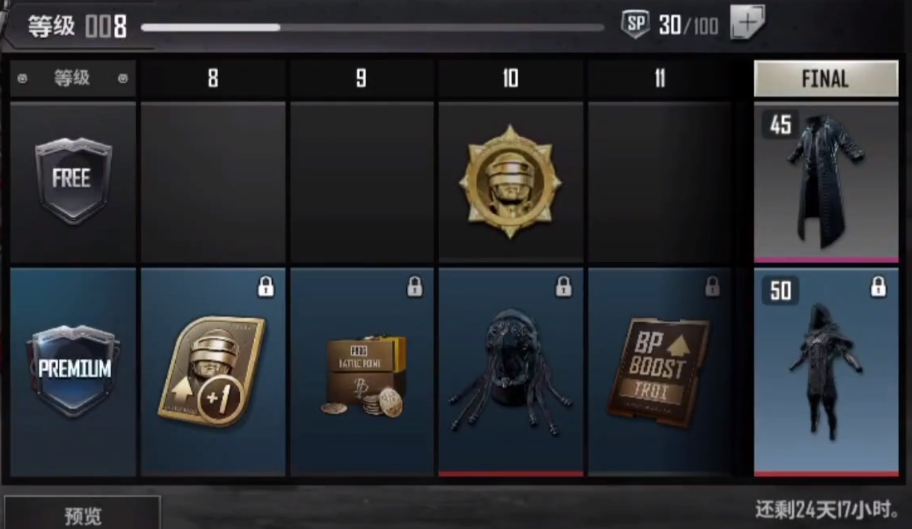 最后面具和等级其实价值不高所以直接解锁前一个档位最为实惠,只要玩的足够任务都是随便完成五十份奖励基本上都是随便拿,最后还能获取一把枪械的紫色皮肤非常的不错属于限定的物品,所以拿到就是赚到。