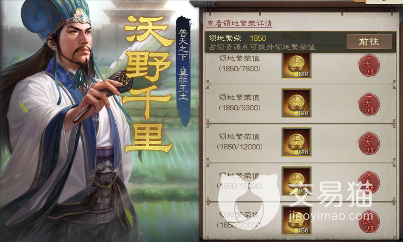 沃野千里活动可以理解为领地繁荣值的成就玩法了,需要玩家达到相对应的繁荣值之后能够直接领取金珠,每个阶段能够最少领取一百金珠,一共12个阶段,合计能够得到1350金珠,差不多能够一个十连的数量了,还是比较多的。