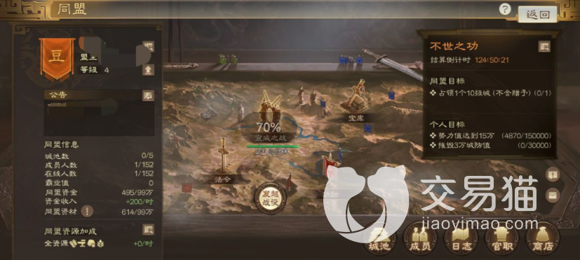 拥有权限的官职人员可以在同盟当中发布战役的命令,能够让同盟所有的玩家一起攻打城池,当战役获取胜利之后,可以获取到功勋奖励,功勋能够在商店中购买所需的资源奖励,能够直接购买的数量是非常多的,有同盟发布了战役的话,一定要积极参与。