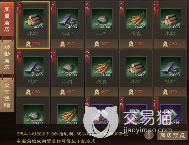 除了功勋商店可以购买资源以外,玩家还能够参与同盟商店,使用获取到的战功来购买基础资源,是玩家除占领资源以外的另外一个重要的资源获取途径,也是非常适合用来应急的一个资源获取渠道,大家一定要将同盟功能重视起来。