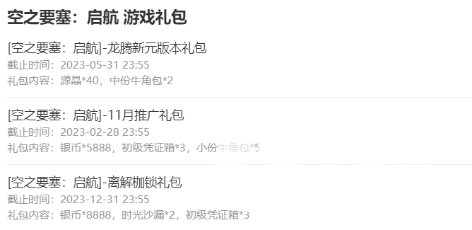 空之要塞启航礼包兑换有哪些 2023最新礼包分享
