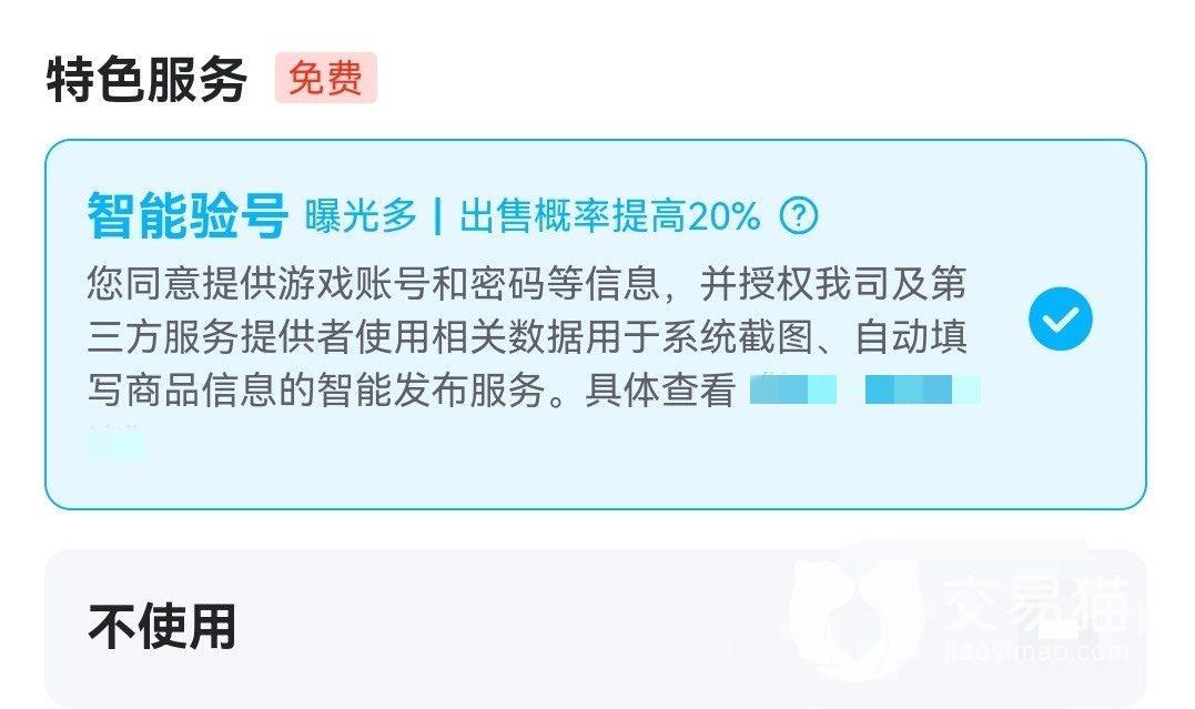 在出售账号时,对于游戏账号基本内容的填写系统是以条和点的形式呈现的,不会说是让大家长篇大论的去介绍一个游戏的特点和资源内容,这样也就在无形中帮助大家提高了出手率,因为长篇大论的文章没有让人读下去的欲望,所以,交易猫平台为了避免这一现象的发生,都是以条和点的形式让大家进行填写的。