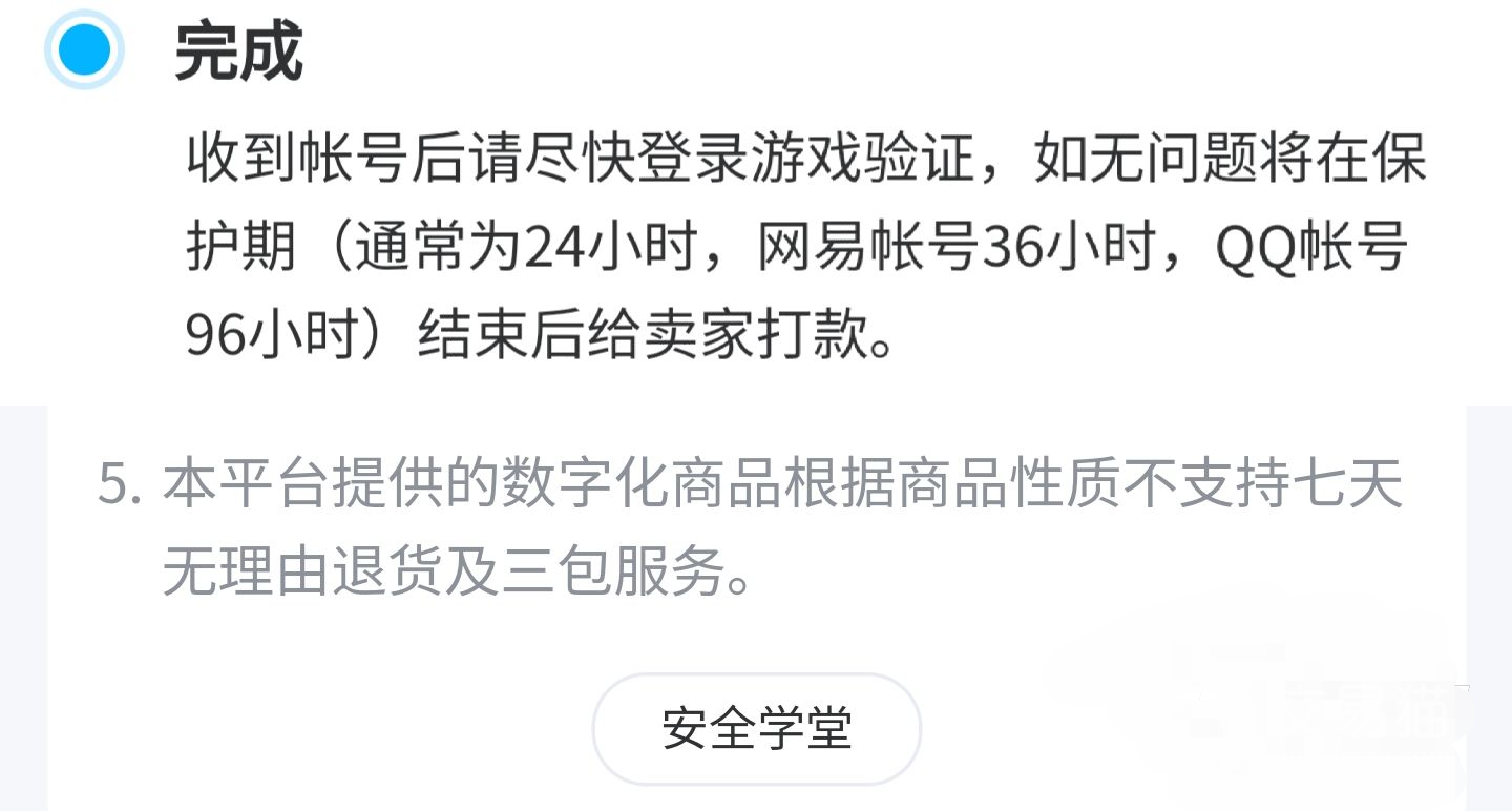 相信有很多小伙伴对出售账号打款问题比较关注,在账号出售以后多长时间可以将钱打到大家的手里呢?交易猫在此问题上也给大家做出了承诺,在买家确认之后货款就可以立刻打到大家的账户上了,如果有一些卖家没有手动确认收货,平台就会在四天左右的时间当中完成自动收货,这样货款就会打到大家的账户里,而且在交易猫平台当中是没有七天无理由退换货这一说法,所以这样就极大的维护了卖家的权益。