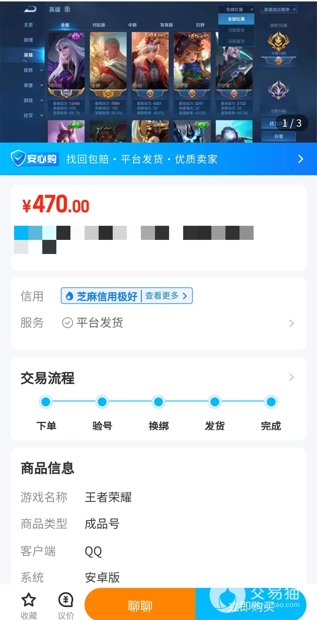 首先,购买账号要保证自己可以找到一个安全靠谱的交易平台,交易猫上市多年以来,以非常完善的制度和优秀的安全保障获得不少的回头客,如果大家想在交易猫买号的话,小编建议大家优先选择小编建议大家尽量购买带有优质卖家标志的产品,如果对方是优质卖家的话,说明他已经授权了芝麻信用或者缴纳了保证金,这样的卖家信任度是非常高的。