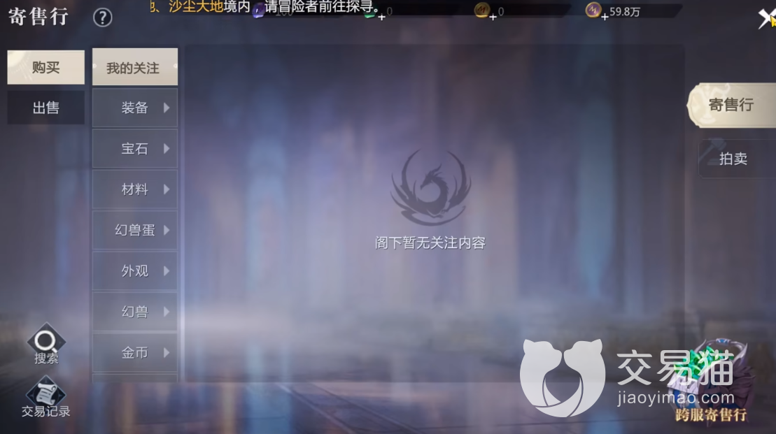主要的交易方式是通过跨服的交易行,这个在菜单栏上直接打开就行,玩家可以看到无论是装备或者外观,金币以及一些宠物之类都能在这里直接进行买卖,当然你也可以通过其中设置的关注功能来时刻注意一些商品的动向。