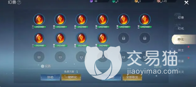 得到了一只魔兽以后,接下来就是培育了。游戏中的幻兽培育体系很容易掌握,主要有两个:孵化和变身。一开始的时候,幻兽是有十个凹槽的,而且每次刷新的时间都不会太长,所以一开始的时候,玩家们也不用着急,直接把魔兽放进去就行了。