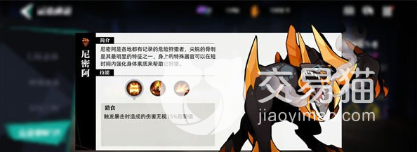 其中A区-尼米亚:这是世界上最危险的捕食者,最显著的特点就是他那锋利的骨刺,他的特殊器官可以让他的身体得到短暂的强化,从而让他的捕猎变得更加强大。