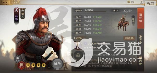 吕岱从他的角色详情页,能看出来不管武力还是、统率,还是智力、魅力等,都并不是非常突出,换而言之,这个角色不管是作为冲锋上阵的武将还是内政官,都可能表现平平,但是比起冲锋上阵更多玩家会让他去做内政官,毕竟他在这方面的效果会比战场上会相对好一点。