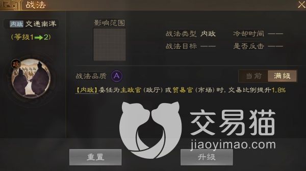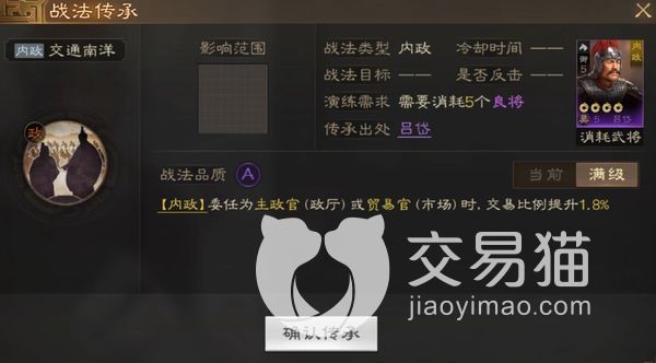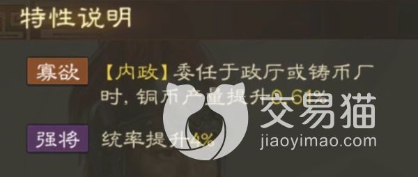 而他的战法上建议大家可以带交通南洋,这个技能可以让角色的交易比例提升,只要角色在游戏中担任主政官或者是贸易关的时候就能将交易的比例提高1.8%。