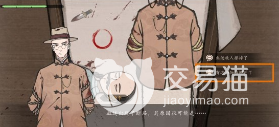 在通过镜子寻找真相的时候,我们很快就可以看到一些可疑的地方,除了凶手、作案工具以及袖子上的血迹外,点击血迹中间区域可以触发疑问,这里选择第二个选项,有相对应的遮挡物,同时获得证据血衣,这时镜子已经没有多余的信息,我们可以离开屋子去触发新的剧情。