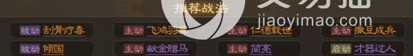 除此之外还能带上刮骨疗毒,飞鸿羽翼,仁德载世,洒豆成兵,献金赠马,简亮,才器过人,性行均淑和坐守孤城等战法,这些在游戏中也能对角色起到非常重要的作用,要是不知道该怎么去选择的玩家,可以直接使用这几个。