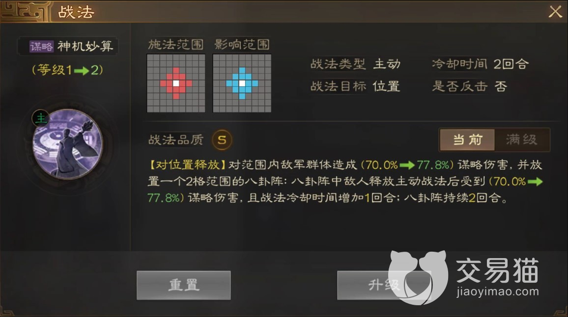 在目前所有展现出来的角色属性中,诸葛亮的智力绝对是最高的一个,这样无论是谋略输出还是谋略防御,都会有极高属性成长。这样强势属性也就意味着绝对不会走辅助路线,肯定是全部选择输出类型,这样才能对得起强悍天赋。诸葛亮自带神机妙算,释放之后对范围内敌军造成高额谋略伤害,同时还有附加后续阵法持续存在两个回合。被阵法效果所影响敌军将会持续受到伤害影响。