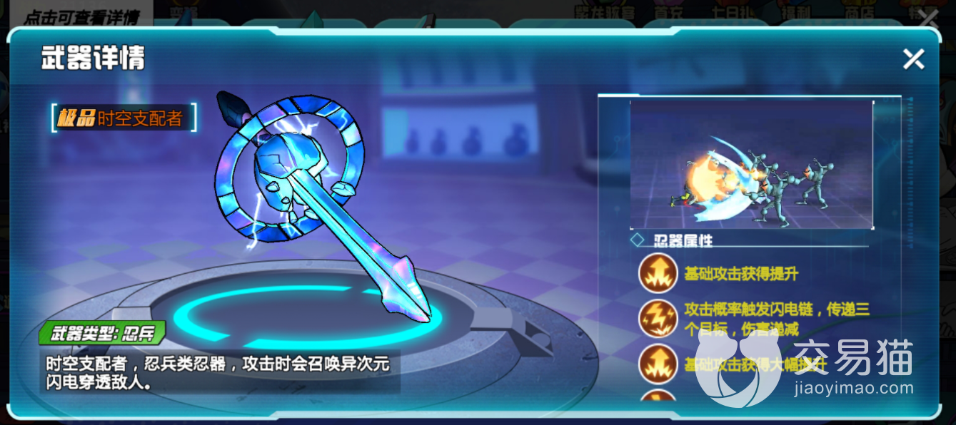 时空支配者:攻击有一定概率触发额外的闪电链,召唤异次元闪电穿透敌人,可以同时攻击多达三个敌人,是一个打群伤的刀。