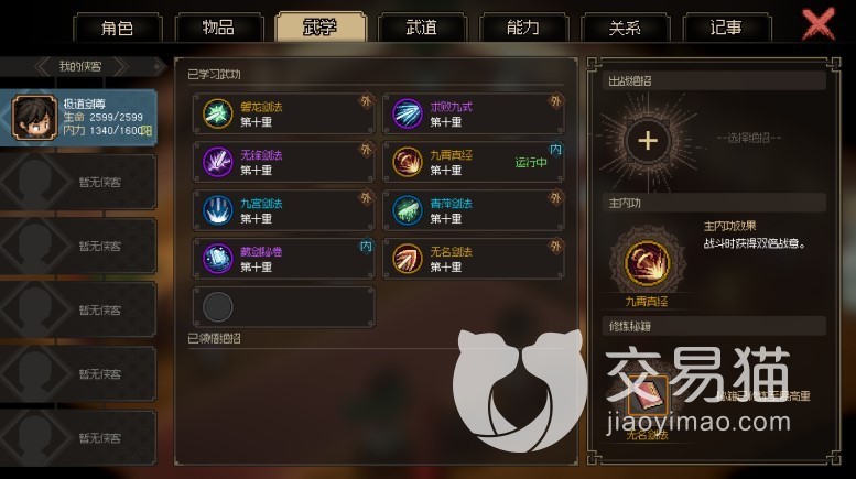 无名剑法可能很多人会联想到天剑无名,这本剑法搭配轩辕剑以及九霄真经可以触发攻击力大幅增加的套装特效,所以某种程度也是极其厉害的剑法。以上就是大侠立志传剑法秘籍的各种介绍了,目前的剑法应该还不是完整的,正式版中每个品级想必还会有更多数量的剑法供大家选择。