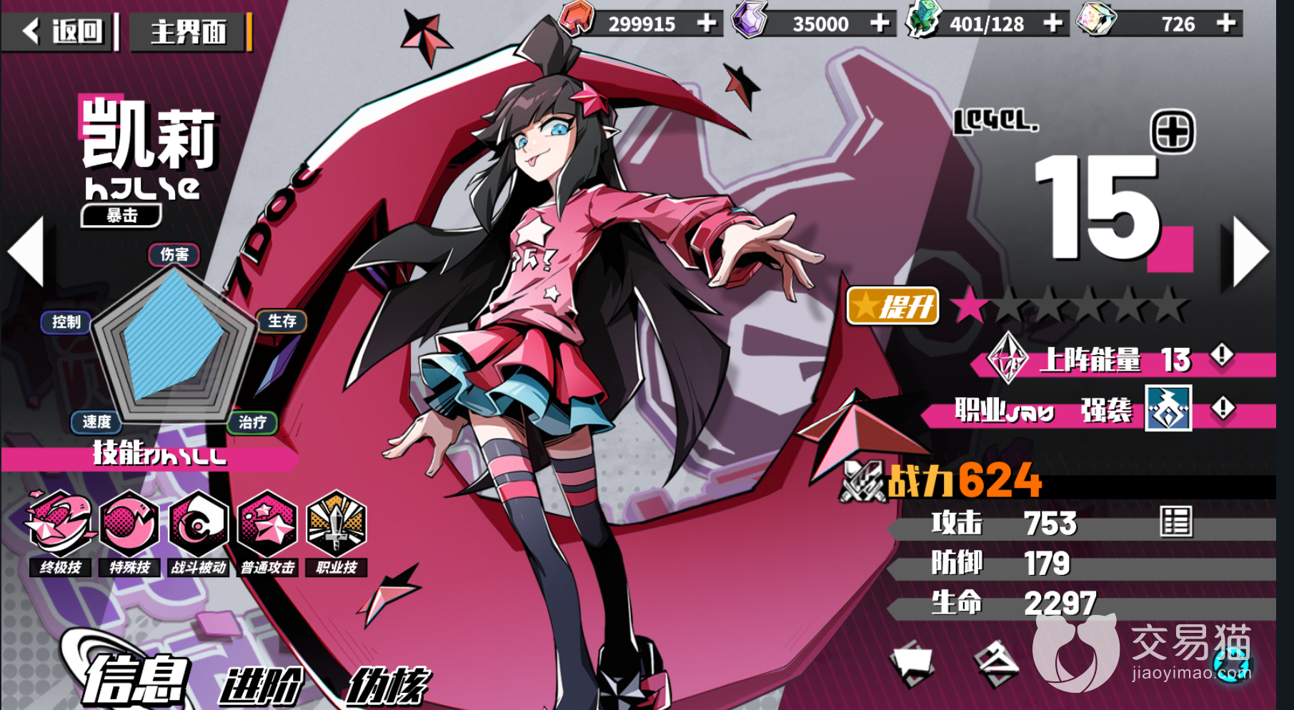 凯莉上阵能量是13,属于强袭职业,可以对地方造成巨大的范围性伤害,也就是群伤,所以她在场上的话,我们可以更容易打出一定的优势来。