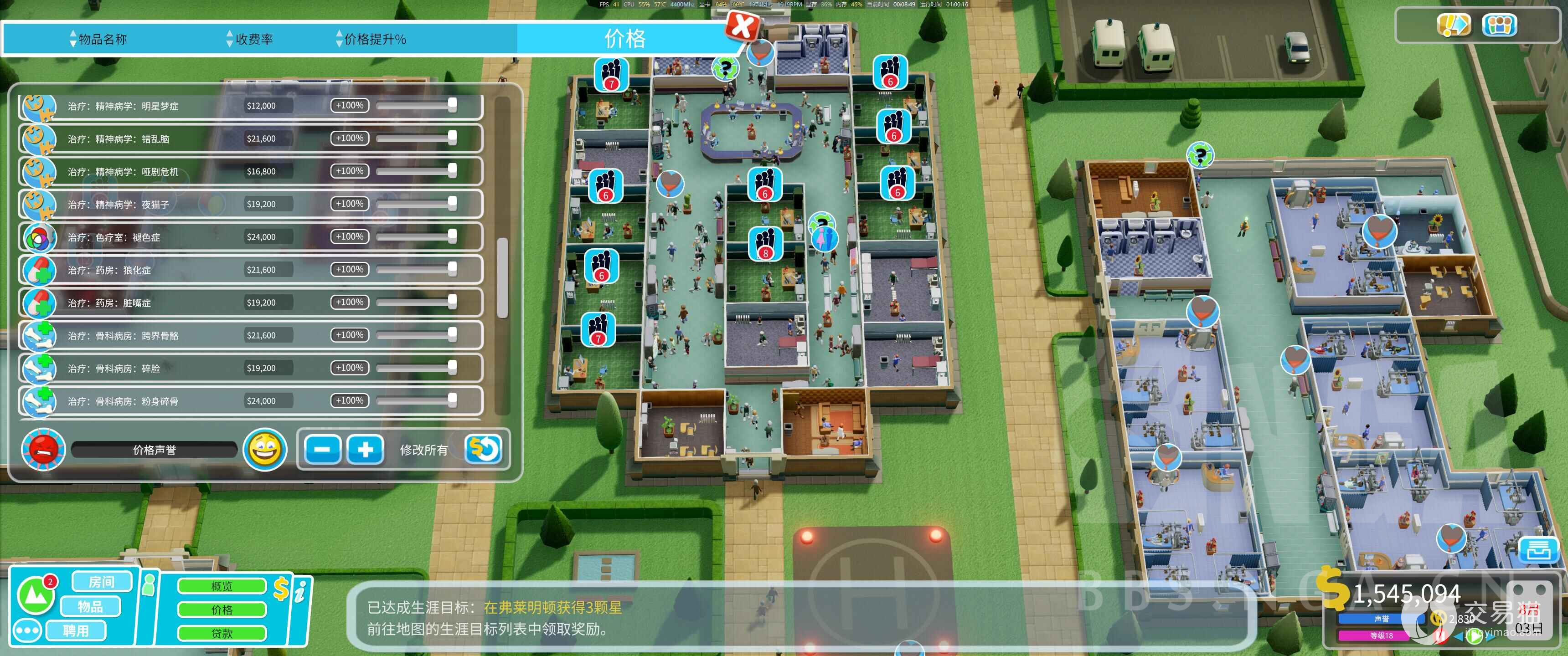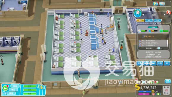 造成这种情况的主要愿意,是由于这一间科室要分作两用,就必然会导致人手不够的情况,如果这个时候玩家不增加医生和护士,那么结果就是排队等待诊断的患者越来越多,而正在接受治疗的患者又迟迟无法完成就诊,最终导致病人流失,医院评分下降。