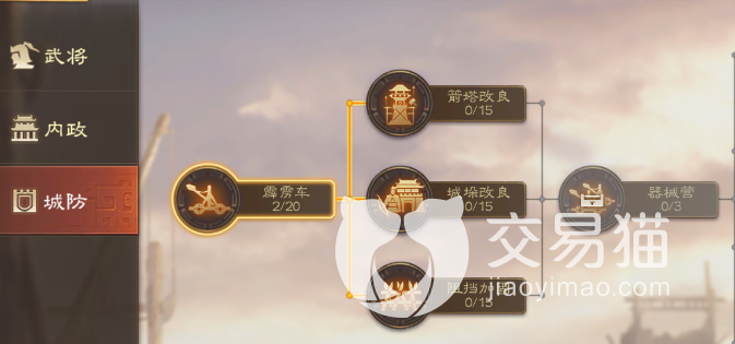 太学在主城当中属于三级建筑,需要玩家的政厅提升到三级之后才能够解锁该建筑,在完成建筑的建造之后就能够进入到太学中了,在这里可以看到三大不同科技点选项,分别为武将、内政还有城防,进行科技点的升级提升之后可以增加相对应的属性。