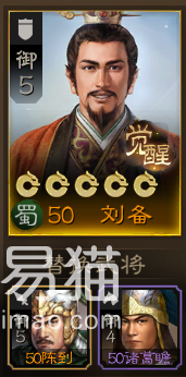 刘备的作用主要还是保护队友,因为他的战法既可以分摊伤害又可以治疗队友,如果想要打得更加暴力一些,可以使用同为金卡的“陈到”进行代替,他只需要消耗5点御值,并能提升队友伤害与移动力,既提高了队伍爆发又进一步加强了冲阵能力。“诸葛瞻”则是单体伤害加断粮,主要是减益敌人,前期拿来过渡是很不错的,因为削弱敌人就等于变相加强自己。