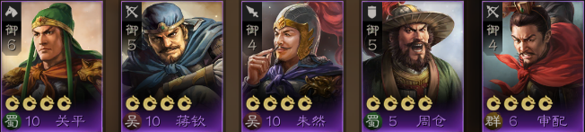 开荒紫将阵容:关平、蒋钦、朱然、周仓、审配