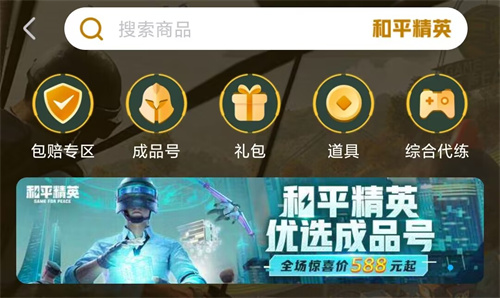 其次平台里面的功能在买号上尤为突出,为了可以让小伙伴能更好地去购买和平账号,它还开设了专区,里面的账号类型大家也能清楚的看到,成品、礼包、道具以及代练等各个服务都可以去享受,此外部分商品还能受到官方承诺的找回包赔保障,这样买号也会变得更加的安全,包括一些优质游戏号的活动放送,大家也能在此看到。