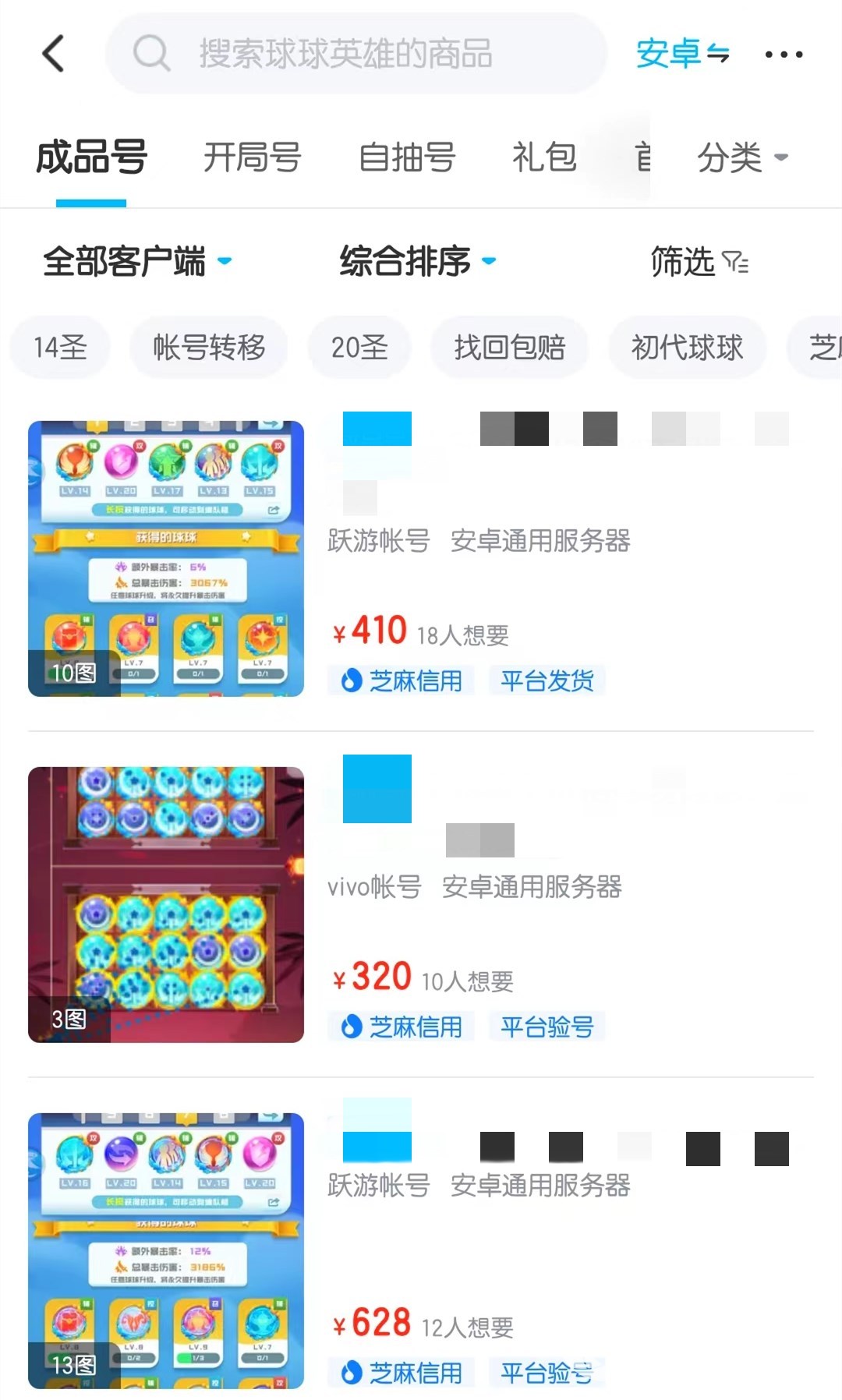 球球英雄能不能买号,大家看到这里应该非常清楚了吧,想购买球英雄账号,来交易猫就对了,大家想想,交易猫现在已经很多用户都是非常稳定的回头客,甚至有一些玩家只选择交易猫进行买号,这郑说明了这个平台是非常优秀好用的,如果你也想买账号的话就别纠结了,说不定你犹豫的时间就已经有一些小伙伴买到了很优质的账号了。