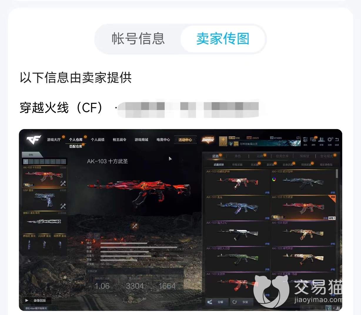 一般买号的玩家都是冲着英雄级武器去挑的,在交易猫平台内各种类型账号均有出售,账号详细情况都会清晰的展示给买家,一般卖家都会把用截图把资源都发一遍,看完图片就能了解大致情况了,在下单时候玩家可以进行验号,一定要对比截图内容是否属实,这样就可以避免被卖假号的卖家欺骗。