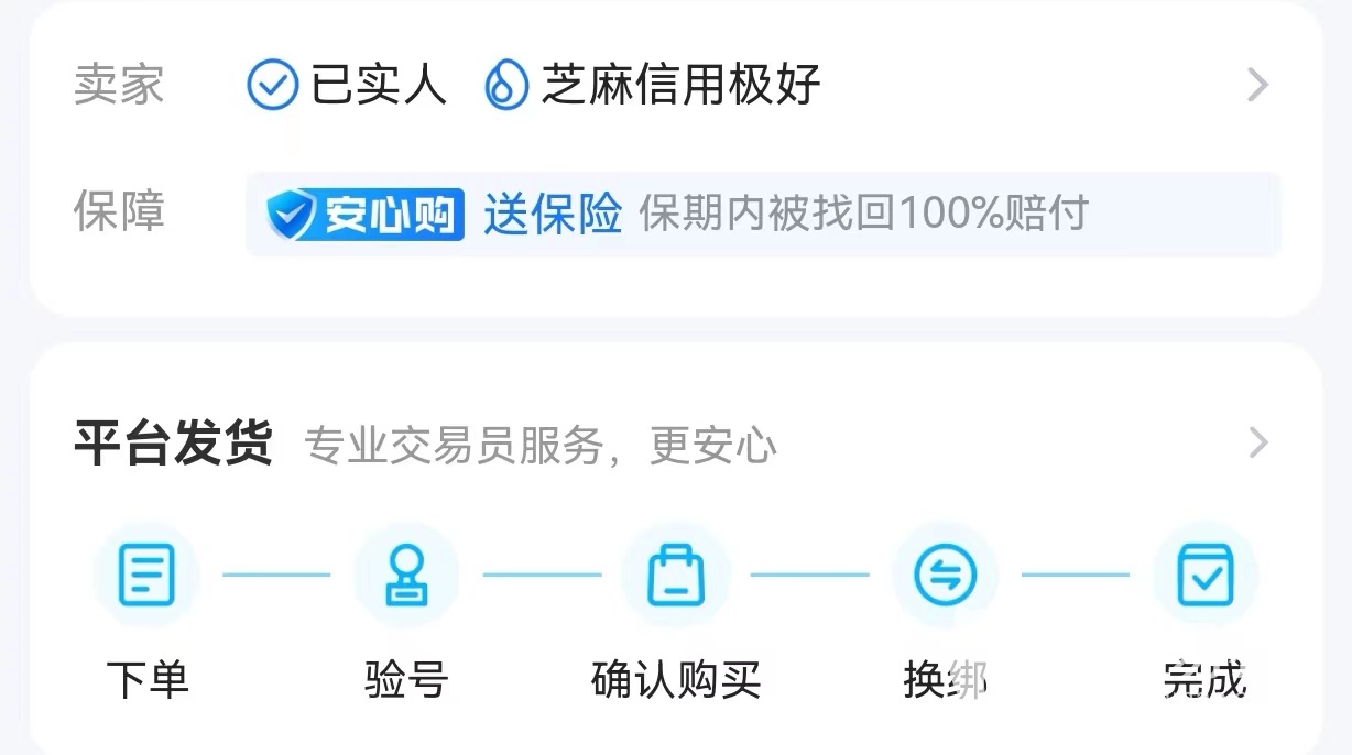 下单的安全也不能忽视,最好找参与保险的账号最可靠,通常会标有:找回包赔、送保险的标签,这类账号如果在保期内出了问题可以直接联系客服处理,根据情况还能拿到赔偿。账号的保险费是买家或卖家承担的,送保险就代表卖家来支付保费,大家下单时候最好注意点。