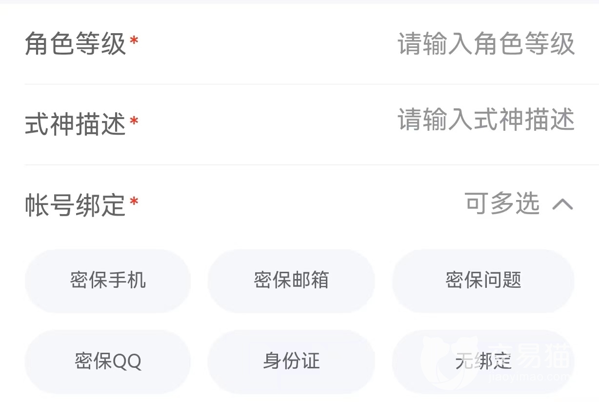 卖家出售账号第一步就是把商品拿上货架,账号出售也一样,玩家找到对应游戏类型系统会罗列出一些基本的词条分类,按实际情况填写好之后账号的情况后就可以上传图片对账号进行文字描述,最好用简单常见的文字,方便买家查找,最后一步填上售价就可以上架了,如果对价格行情不清楚的话建议使用交易猫官方的估价功能或直播估价,给出都是比较合理的价格,一定不能乱标价哦,对出售成功率、效率都有影响。
