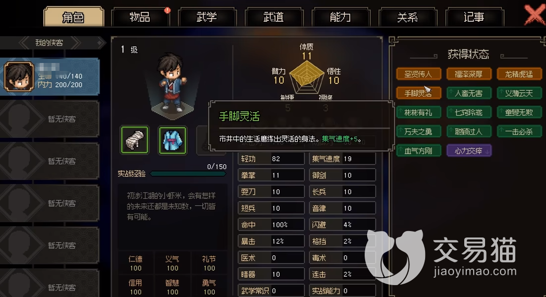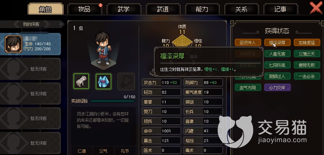 大侠立志传先天属性如何提升 先天属性提升方法分享