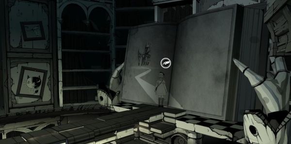然后我们再回到房间一的第三个阶段,点击台面上的书本再把刚刚获得到的铃铛放到圆台的右边在那里有一个缺口,把它放进去就能填补这个缺口了,然后就会发现这个圆台,它能进行旋转了,将铃铛转到自己的正对面而烛台的位置,在我们的左侧此时还有一个缺口,把水壶放进去继续转,接着就会发现一个斜口,再把鞋子放进去,这样继续旋转,然后让该烛台的具体样子与墙上影子保持一致就能完成最快的任务了,自此第六关已经全部完成,想进入下一关的玩家,只需要通过书本进入墙中,就能进行下一关啦!
