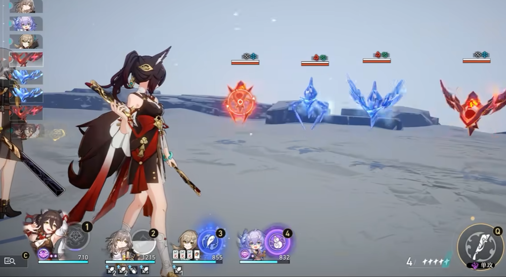 在游戏中使用听云还有一个小技巧,就是在开始战斗之前,释放听云的大招,这样会立即为队伍中的成员提供能量,是有机会做到进场就开大招的,但是需要玩家给听云增加一些挂件来提升充能速度。