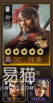 程普是盾兵,属于队伍的前排,但其战法同样给予了他大范围的功能性,每次受到伤害都会降低攻击者的武力与智力属性,配合自身免伤能够变得异常能抗。御值够多的话建议可以拿“曹仁”替换,其战法提供的免伤以及群体抵御都要比程普所拥有的坦度和功能性更强。如果只是想过渡,则可以用“朱桓”替换,他有援护和统率提升的能力,算是弱化版曹仁。