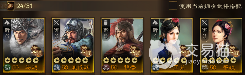 阵容配置:马超+夏侯渊+程普+王异+蔡琰。该阵容采用的是双骑,双弓加单盾的兵种构成,因此无论是冲阵,还是远程输出,亦或是吸引火力的前排都是不缺的,而且这些角色每一个的战法都能起到相当大的作用,实战中组合起来可以发挥出非常高的即战力,另外在武将备选上,阵中的这些人也都有着丰富的替换方案,因此完全支持您在没抽到卡和前期过渡的时候使用。