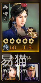 王异的作用在于提升友军普攻次数,这一效果很好的与马超产生联动,两次普攻意味着两次范围伤害的衔接,敌人将被打得措手不及。替换的话可以采用“小乔”或“李典”,这两人也能分别从兵力回复,免伤和智力,武力上提供增益。