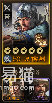夏侯渊是弓兵,他在队伍中主要负责远程输出,战法使其能够在普攻后攻击额外两个敌人,也相当于扩充了范围伤害的手段,只不过这个伤害较低。因此建议拿“黄忠”或“周仓”进行替换,前者的射程与增伤使其在远程输出这一职责上发挥到极致,后者可造成高额单体伤害,同时震慑的控制能力使其在队伍中作用显著,算是过渡的一把好手。