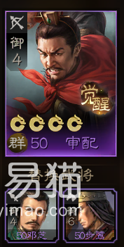 最后的审配属于弓兵,但他较低的武力使其没法很好的承担起队伍持续输出的任务,不过其战法可以提供群体治疗效果,并且刚好能够被其还算不错的智力属性进行增幅,因此他更多偏向于团队中加血的辅助角色。这里建议各位要换人的话,可以从“邓芝”和“步骘”中进行选择,他们两人同样也拥有治疗能力。