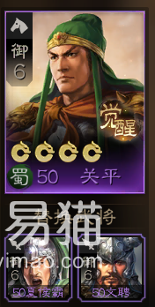 首先说说关平,他的伤害无论是数值还是频率在紫卡里都非常高,其战法可以在主动造成兵刃伤害后对目标后面的敌军附加一次200%的范围兵刃伤害,因此可以选择同样有着高伤害战法的“夏侯霸”和“文聘”进行替代,特别是前者,不仅伤害数值升满后高达256%,而且还能够降低敌人的统率。