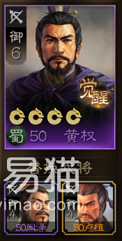 黄权也是打谋略伤害的,不过他的伤害来的比较慢,很依赖战法中所提供的中毒和灼烧buff,这个buff除了能在两回合内不断减少敌人兵力以外,还可以与朱然的战法产生联动。所以如果要替换的话,建议把这两人都一起换掉,“阙泽”和“卢植”都是代替黄权的很好人选,因为他们的谋略伤害足够高,而且还分别附有中毒与增伤的特殊效果。