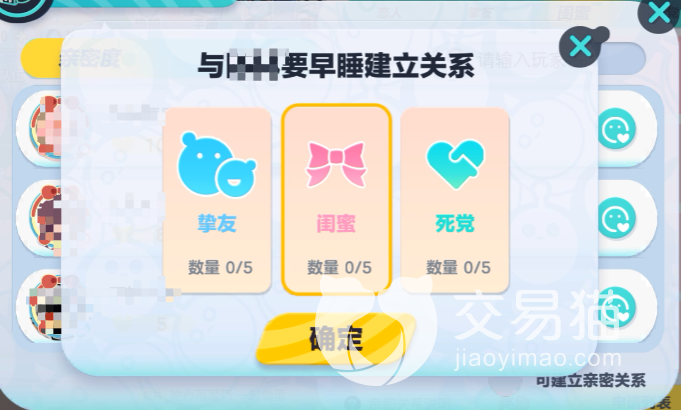 首先各位要清楚的是,这里的各位只有双方的亲密度都达到了一百才能够建立一个关系,这里的关系有四种选项,分别是恋人,挚友,闺蜜和死党。它们还是有数量限制的,其中的恋人自然是只能绑定一个人了。