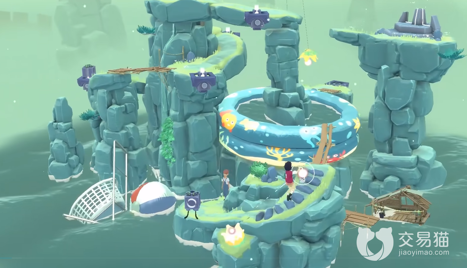 刚开始的关卡只不过是需要将灯当中的光球放到巨大的祭坛上面,然后这个祭坛就会上升一份记忆,这个记忆里面包含着这对小伙伴过去的记忆,所以玩家自己游戏额时候配合着音乐能够感受到这对人物过去的点滴和美好,这是攻略带不来的感受,自己体验更加具有沉浸的感觉,一个地方有多座小岛,当把所有的物品升上天空之后就会来到下一座小岛,小岛的设计就是有很多巨大的物品存在,这些都是主人公的回忆物品,所以每一个岛都会有着巨大的差别,有的可以互动有的无法移动,利用背景的移动就能解开里面的谜题,打开道路。