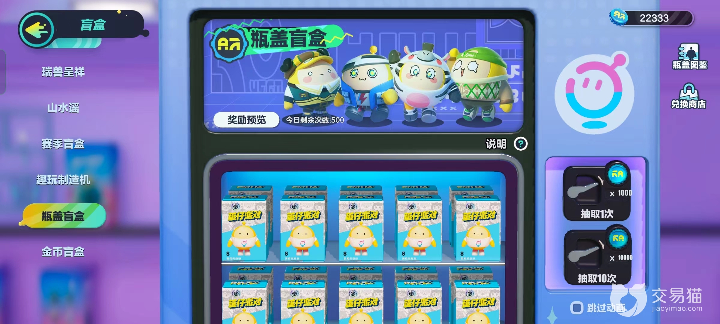 所以运气更好一些,能把盲盒碎片抽出来,早点多积累,就能去兑换店换皮肤了,瓶盖在店里换套装也是非常好的,总体来说还是要有积累的。