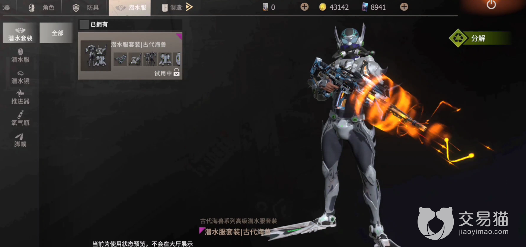 这个皮肤也是非常的好看,他是一套潜水服套装,注定了他其有着较为与其他皮肤不同的特色。外观方面,生物与机甲的完美融合,并且这种仿生物学科技的制作配合上,需要在海底前进的机械脚谱,使得整个角色的造型来看乍一眼猛的,像某个片场的海兽。另外,贴近于潜水风格的呼吸器从背后加载的整个面罩内部,加上一身动力装甲式的气压循环,十分符合我们在水下前进的规律。