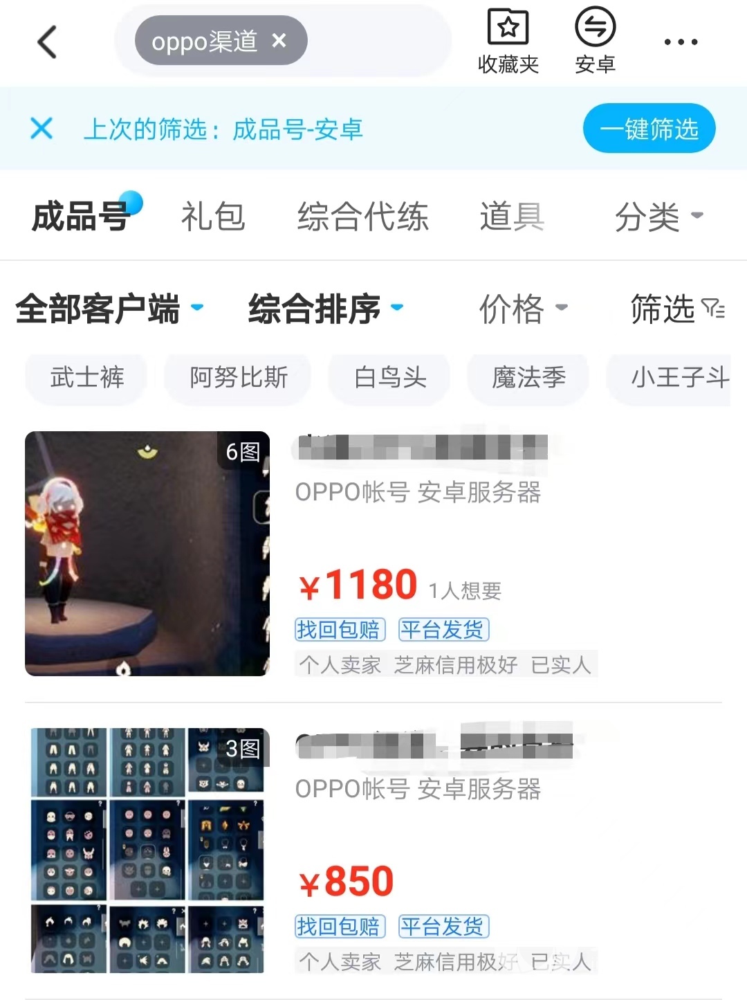 买号注意点一:平台大。平台大意味着盘子大,用户多,那么出售的商品也会多。交易猫可以涵盖时下流行的几大主流游戏,比如:原神、和平精英、王者荣耀等等,也包括一些小众手游等等,这些需要靠买家们上交易猫搜搜看看。就比如小编搜索光遇oppo渠道服就有很多商品在平台上销售。