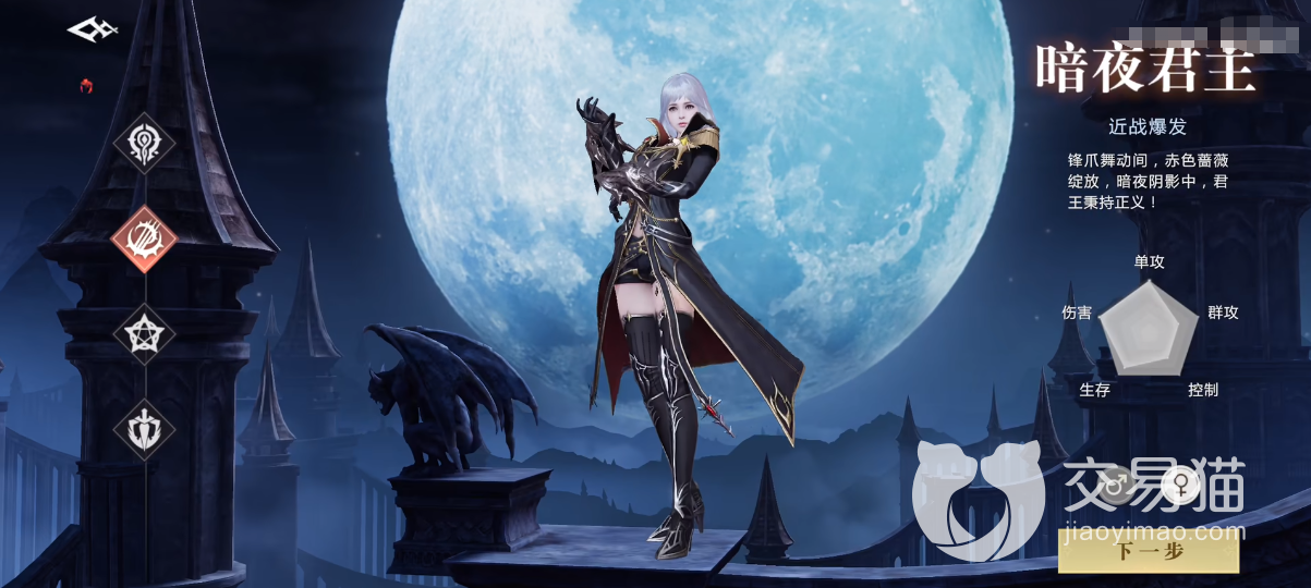 暗夜君主,高爆发职业,像隐藏于黑夜中的贵族。武器是一双锋爪,暗夜阴影中用锐爪重伤敌人,于夜色中开出血色蔷薇,整体是近战爆发性职业,对敌人造成连续的高额物理伤害,高速度的连续攻击就是他的优势。副本输出一大杀器,利用好弧光掠影,瞬影千击,暗翼天袭等主要输出技能,可以对boss造成巨大伤害,头铁喜欢硬碰硬打伤害的玩家可以使用,同时这也是当前游戏版本里的最强职业之一。