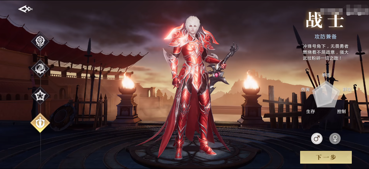 战士,游戏中热门职业之一,小编首位推荐。战士看上去就非常勇猛,手持长剑,男女角色都身着红色盔甲,暗示战士属于攻击防御属性都不低的职业。实际游戏中战士的确各方面属性都非常均衡,生命值和物理攻击都比较高,同样的物防数值也不俗,攻防兼备,属于全面发展的职业了。不过战士技能施法距离比较短,也是个手短职业,需要近距离作战,打boss的时候人物手持重剑直接冲到敌人面前进行厮杀。他的操作属于比较简单的那种,直接贴脸砍输出就行了,总体来说还是适合新手的,也是游戏初期团队中不可或缺的职业之一,变相的小坦克。
