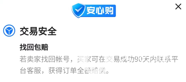 想要追求所谓的安全服务,最直接的肯定还是免费保险,在有了保险之后,只要是账号里别进行二次充值,对方要是找回账号肯定得不偿失,而交易猫针对一些信用良好的商家赋予了安心购的权利,当然,现在也只是部分商品才有,买家选择此类账号就相当于是免费购买了一份保险,保期九十天内账号出现的问题可进行理赔申请。