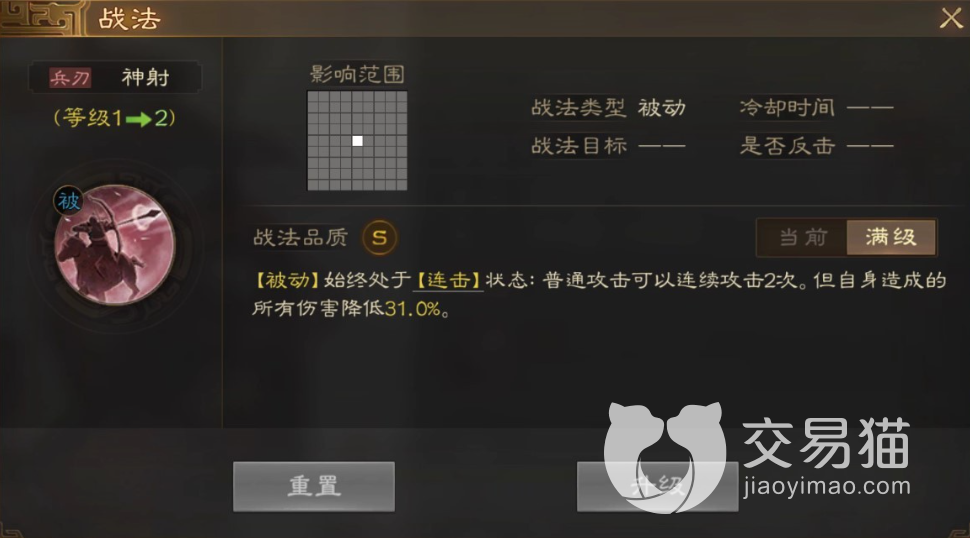 首先太史慈的战法技能“神射”是属于被动技能,当太史慈使用弓箭进行普攻的时候那么会一直处于连击效果加成,可以连续攻击两次,但是攻击的伤害会降低31%。并且“折冲御侮”在造成伤害后能够降低对方的统率和智力。并且周围的友军会随机获得一次每一伤害的效果。