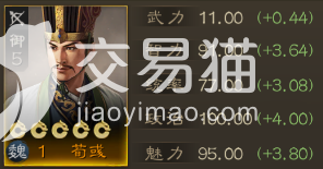 该武将虽然武力值超低,但是智力和政治能力却是罕见的高,可以用离谱二字概括,因此其辅助能力可以堪称逆天般的存在了,第一战法为启动型战法王佐之才,能够让友军全属性高数值提升,同时还会受到智力的额外影响,智力越高提升的数值就越加的恐怖,还能够附加上移动力提升的效果,只要获取效果加成,在武将死亡和更换目标之后才会取消该状态,可以说是一个永久性的BUFF加成了,这个加成效果是该武将独有的,可以看得出其价值有多高了。